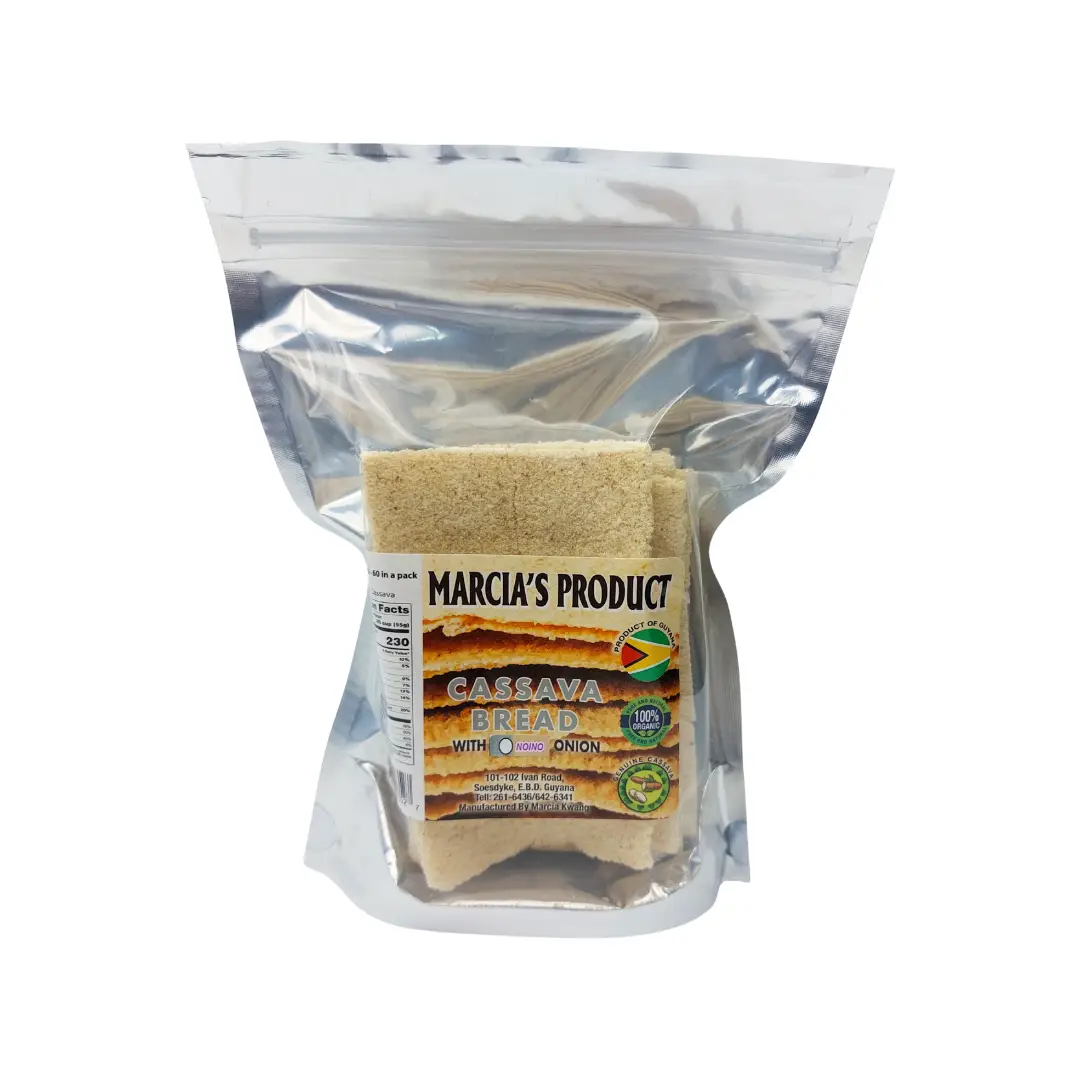 Savor the bold, earthy taste of cassava with a savory twist in our Garlic & Onion Cassava Bread. Made from finely grated cassava root and infused with aromatic garlic and sweet onion, this gluten-free bread offers a deliciously crisp texture and rich flavor profile. Perfect as a snack, side dish, or base for your favorite toppings, it brings a Caribbean flair to any meal.